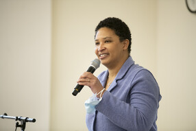 While Alumni Day attendees remained masked except during an optional boxed lunch at the Faculty Club, it was clear from the mingling and easy laughter that the dean wasn’t alone in her enthusiasm. But Dench addressed more serious issues too, noting that graduate education is in a period of dynamic change. Dench said, for example, that mental health concerns are “hugely visible right now,” and spoke on the shifting labor market for PhDs.